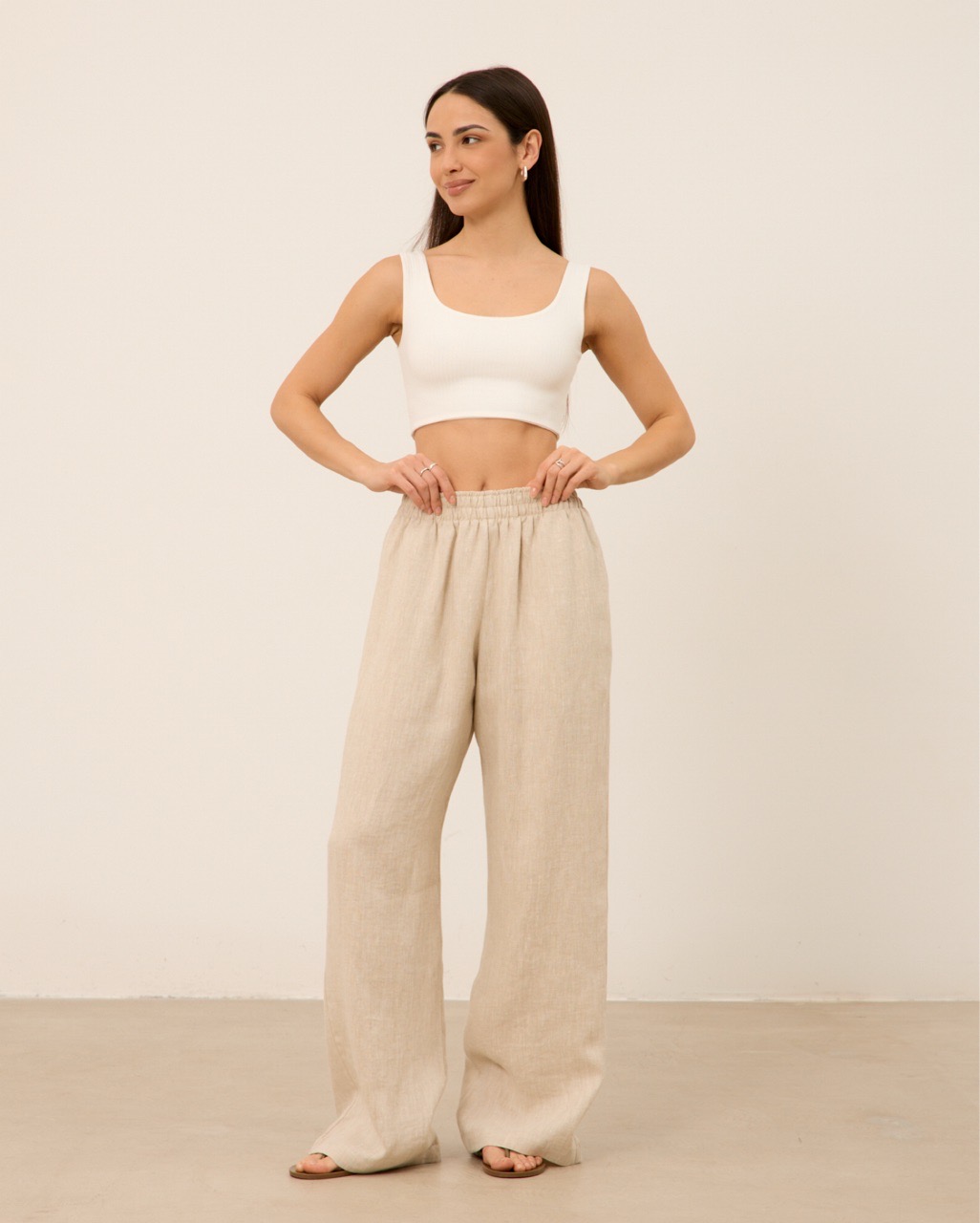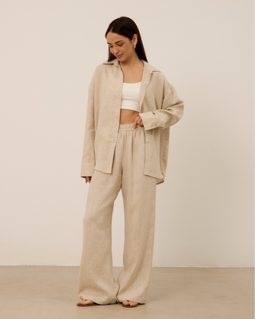 Рубашка 07, из 100% льна, бежевая