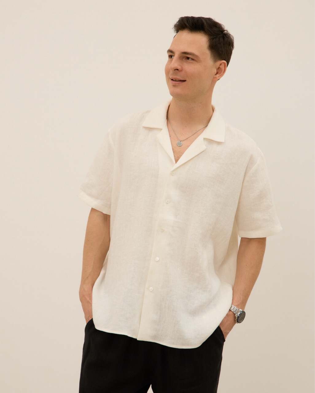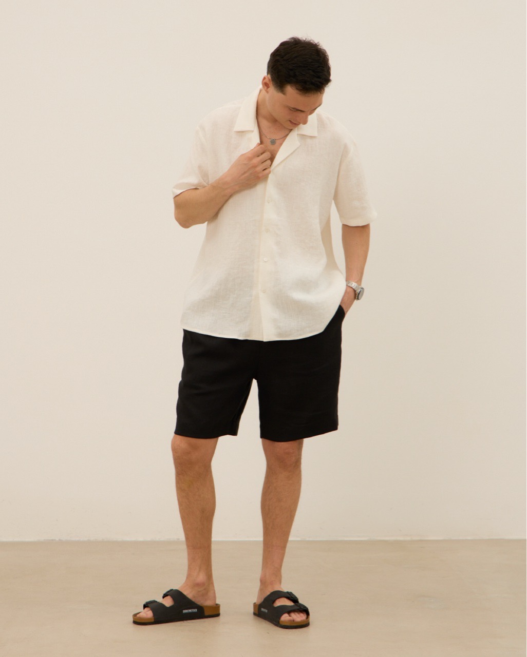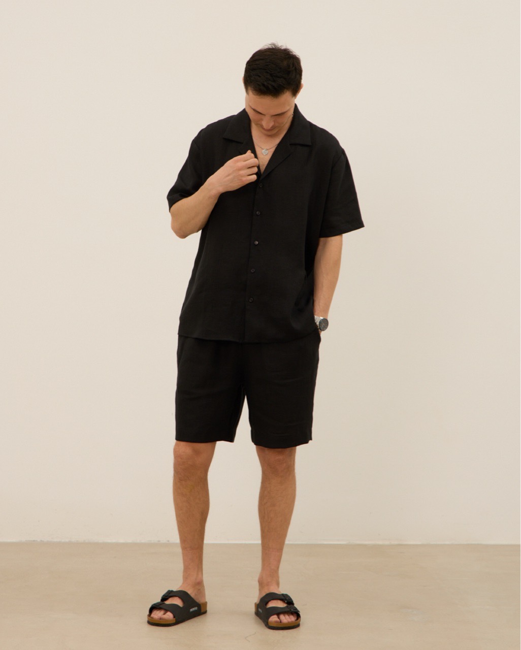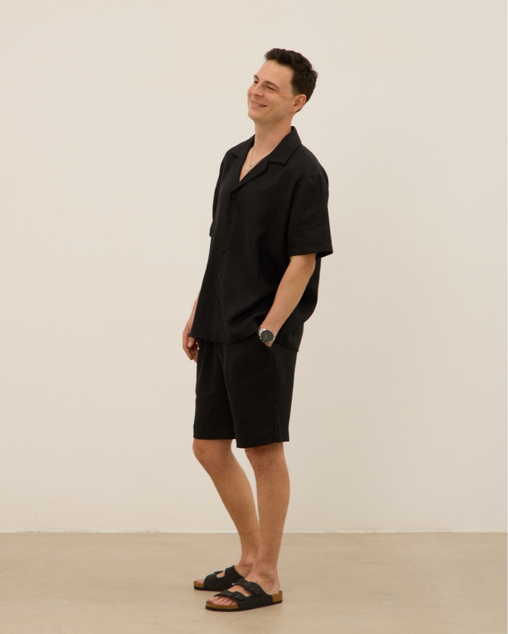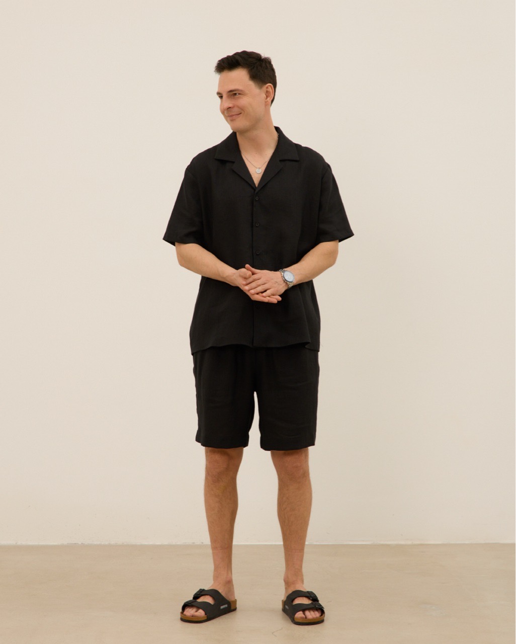 Шорты мужские, из 100% льна, черные